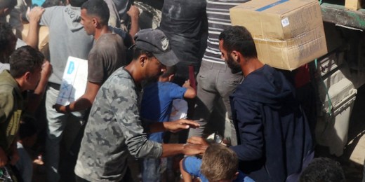 Palestinians crowd onto aid trucks moving through Gazapickerwhel
